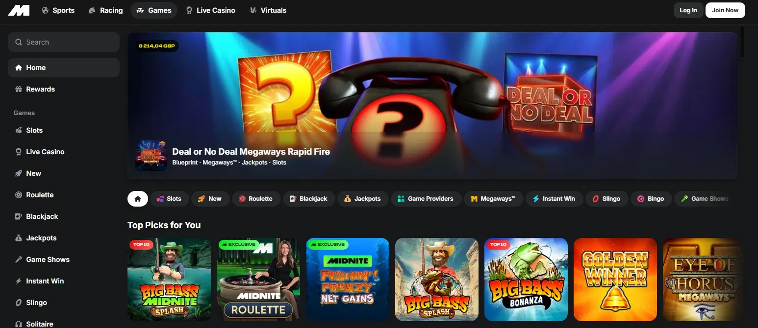 Games and Providers: Offers a huge selection of games, including slots, table games, live casino, poker, and other entertainment from a variety of third-party providers. The catalogue includes popular slots from providers such as NetEnt, Novomatic, Playtech, Pragmatic Play, IGT, and Evolution Gaming.